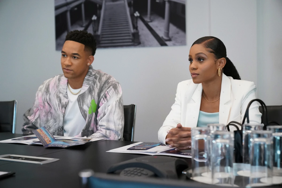 Simone talks to Thea who is being dismissive of her. She smiles at Damon the leaves. Simone asks Damon if something happened with Thea at the party, but it's not his place to say. President Zeke begins the speech about service week to the athletes. Keisha is the event organizer. Keisha and her dad talk outside as they discuss therapy. She brushes off the topic of therapy and snags Simone to pretend they have plans. Keisha remarks her aura is off and guesses it's about Damon, remarking they need to co-exist. They suddenly turn around as Keisha is avoiding her ex Lisa. Simone teases her about co-existing.